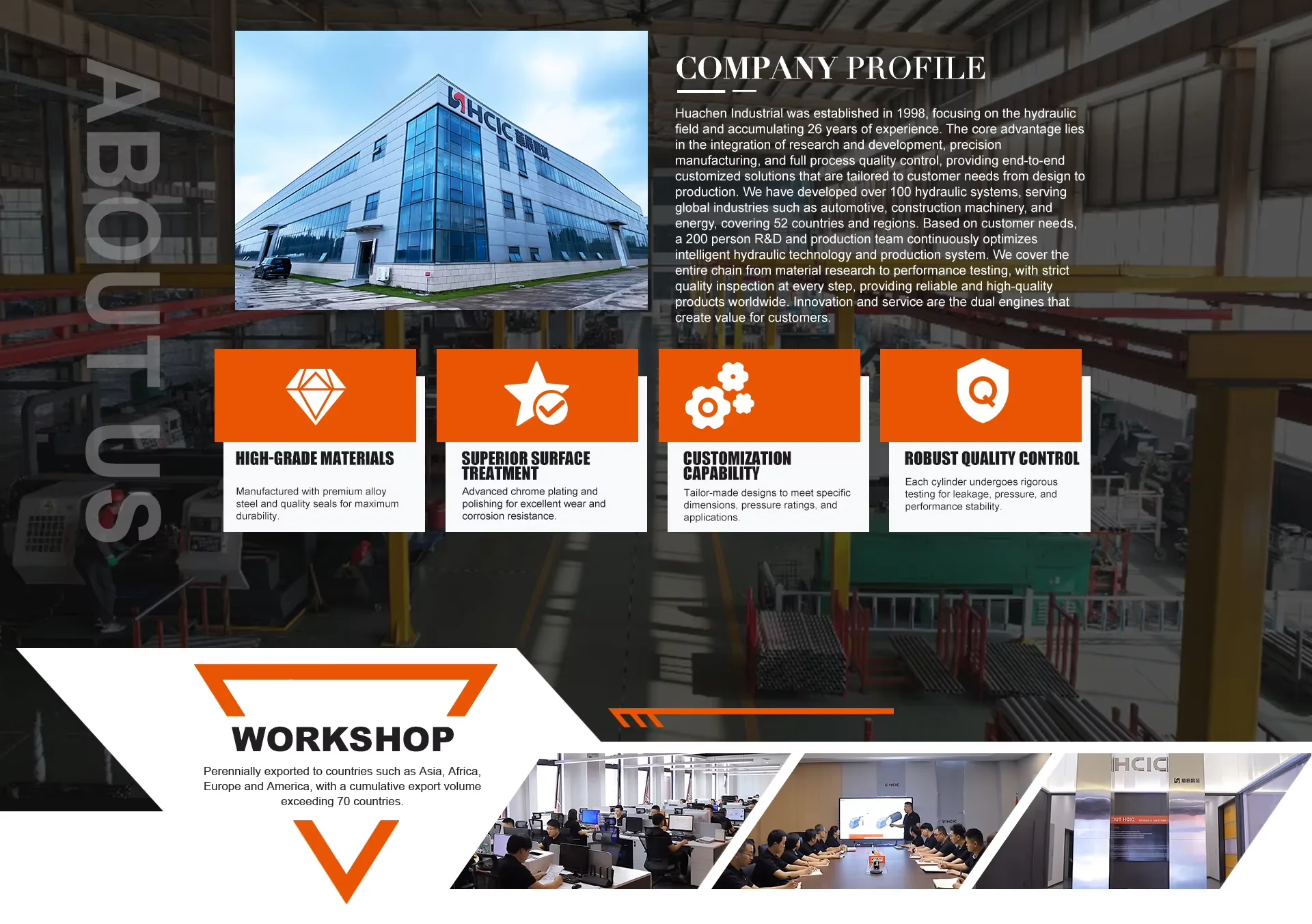 HCIC Hydraulic ist ein professioneller Hydraulikhersteller, der sich auf den Entwurf, die Herstellung, die Installation, den Umbau, die Inbetriebnahme und den Vertrieb von Hydraulikkomponenten von Hydrauliksystemen spezialisiert hat. Wir bieten technische Dienstleistungen an und sind bestrebt, unseren Kunden sichere und zuverlässige Produkte zu liefern, die den anspruchsvollsten Anforderungen gerecht werden. Das HCIC-Ingenieurteam arbeitet eng mit Kunden zusammen, um deren Anwendungen zu verstehen. Mithilfe einer Reihe bewährter Konstruktionsmethoden und fortschrittlicher Fertigungsanlagen, gepaart mit unübertroffener Ingenieurs- und Fertigungserfahrung, entwickelt HCIC Hydraulics sichere und zuverlässige Hydraulikzylinder für kritische Anwendungen, unterstützt durch einen beispiellosen Kundenservice. Wir entwerfen, konstruieren und produzieren Hydraulikzylinder in einer hochmodernen Produktionsanlage und halten uns an unser nach ISO 9001-2015 zertifiziertes Qualitätsmanagementsystem, um unseren Kunden Produkte höchster Qualität zu gewährleisten.