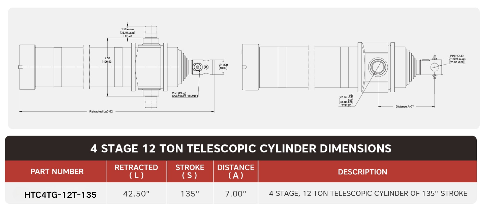 „HTC4TG-12T-135“, 4-stufig, 12 Tonnen 135-Zoll-Teleskopzylinder