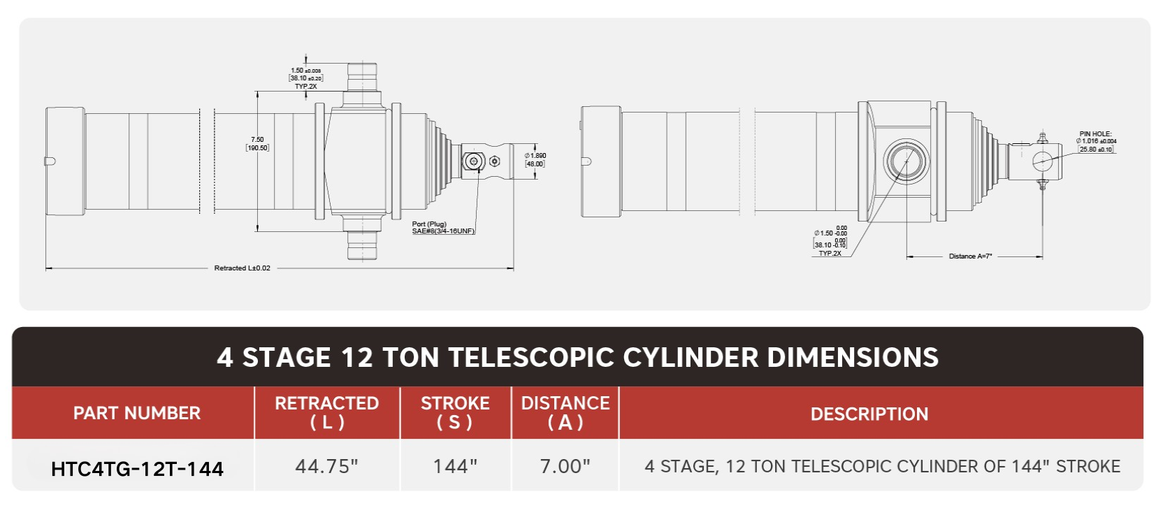 „HTC4TG-12T-144“, 4-stufig, 12 Tonnen 144-Zoll-Teleskopzylinder