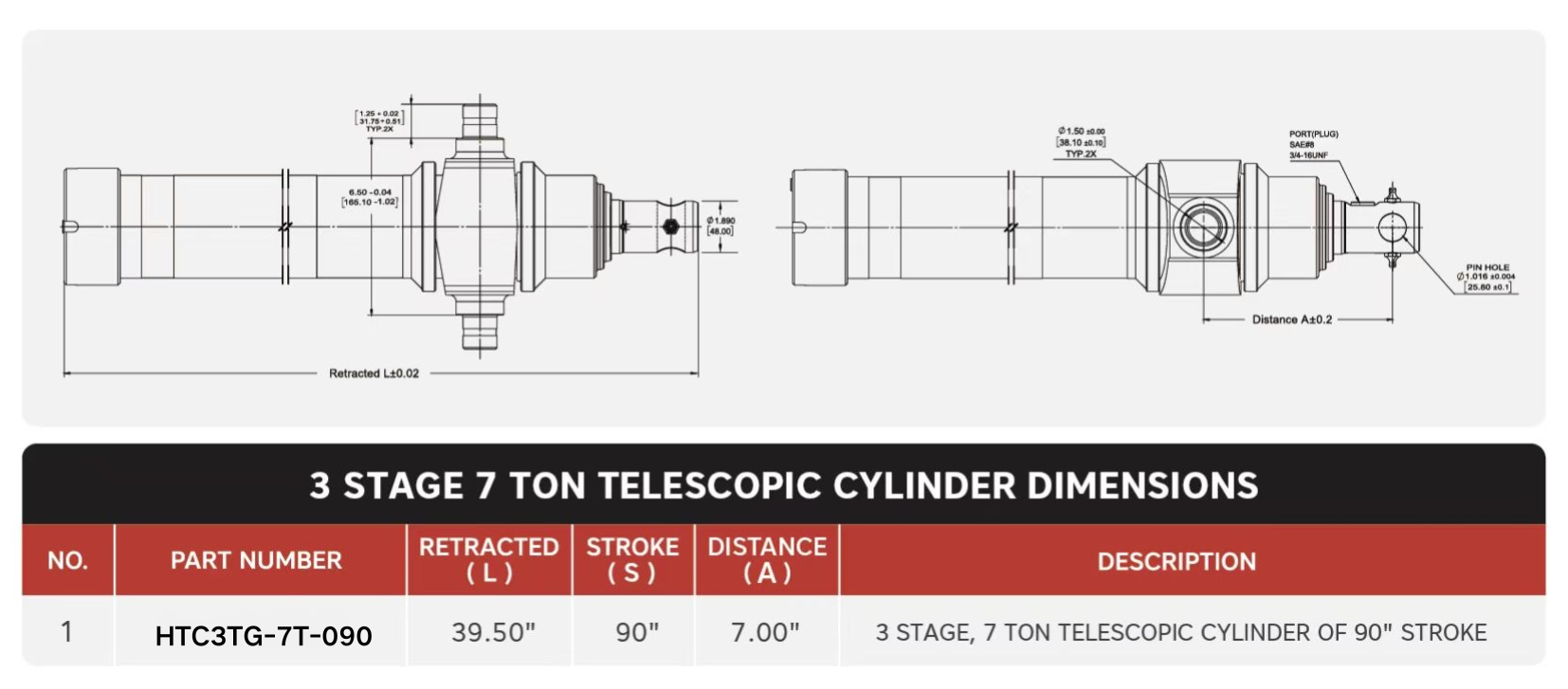 „HTC3TG-7T-090“, 3-stufig, 7 Tonnen 90-Zoll-Teleskopzylinder