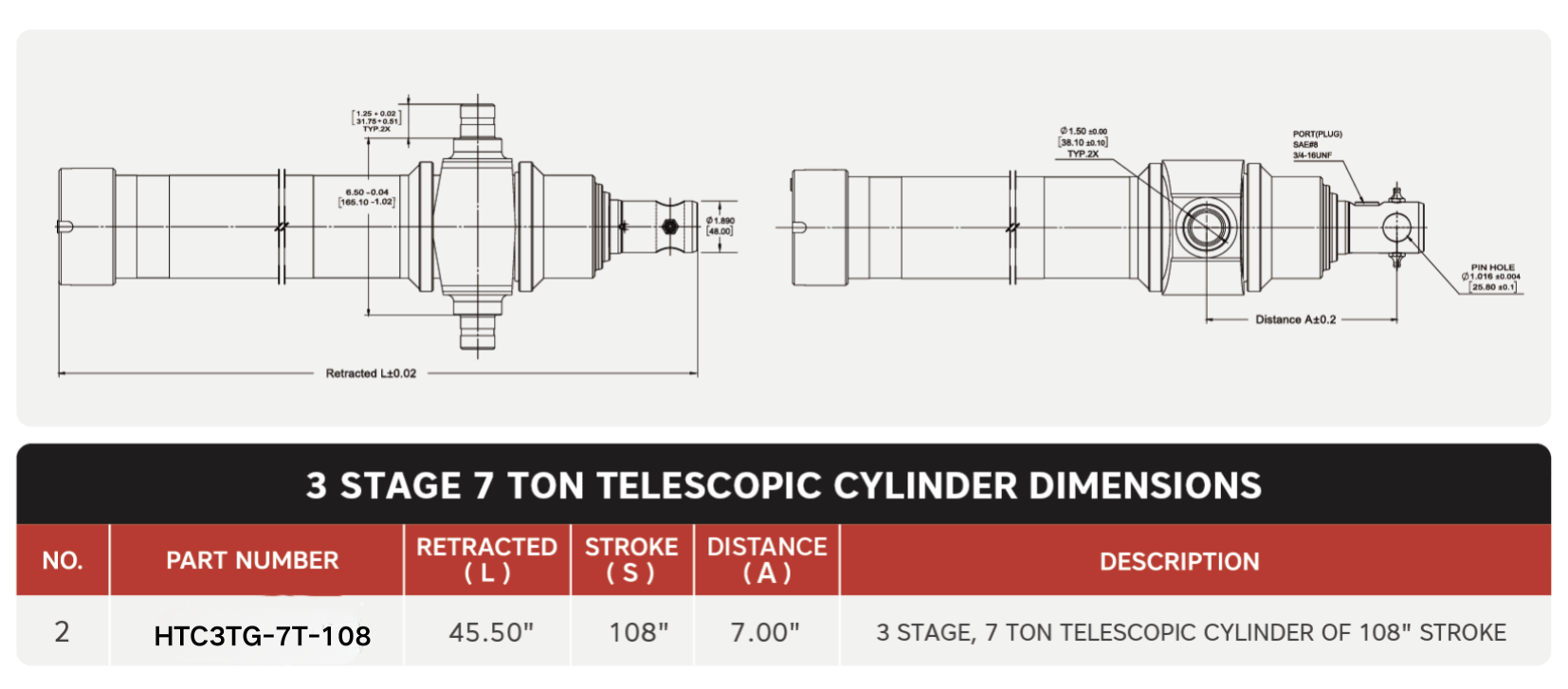 „HTC3TG-7T-108“, 3-stufig, 7 Tonnen 108-Zoll-Teleskopzylinder