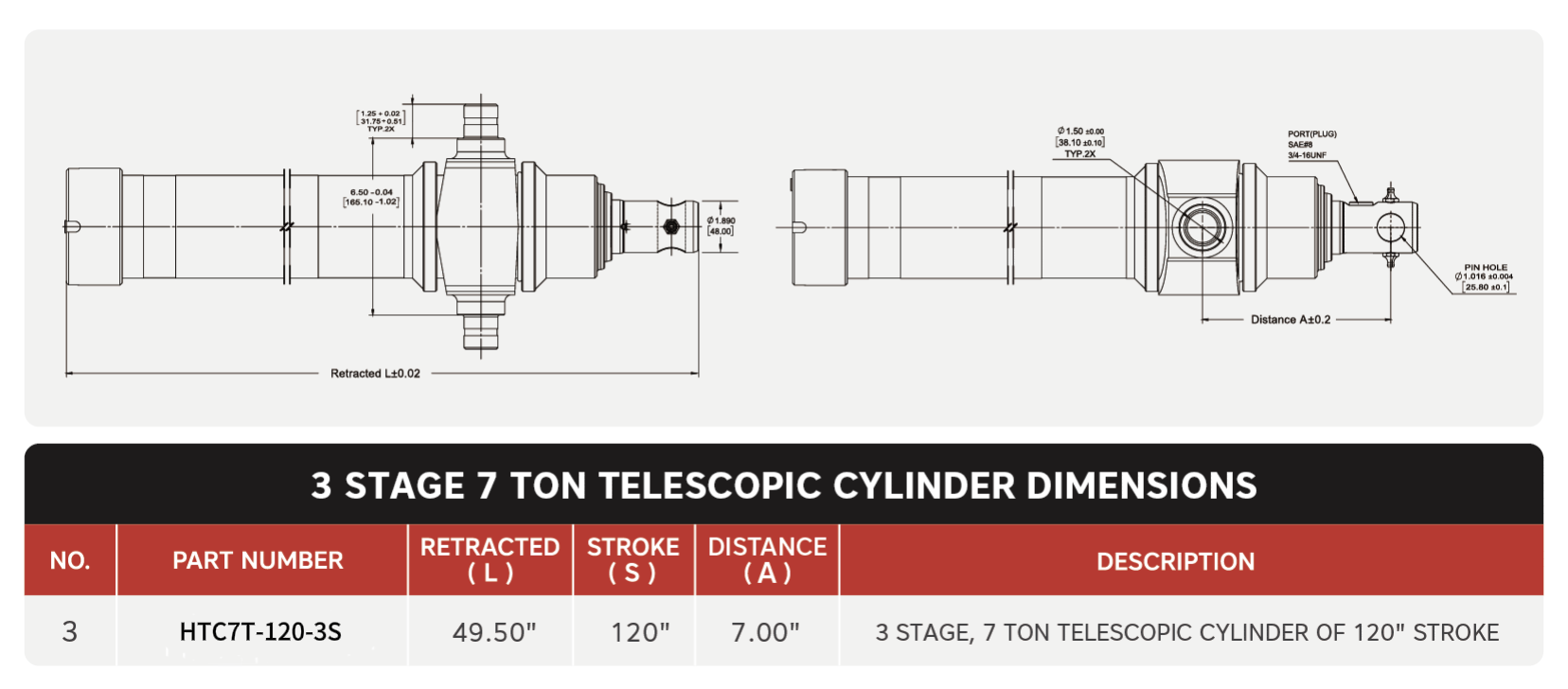 „HTC3TG-7T-120“, 3-stufig, 7 Tonnen 120-Zoll-Teleskopzylinder